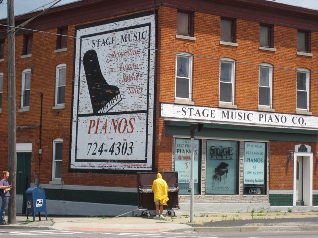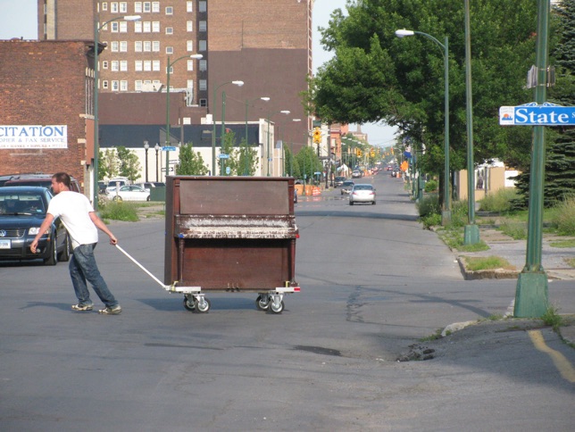 The soot-damaged piano, obtained free of charge from Utica’s piano merchant Stage Music & Sound, had been recently rescued from a chimney collapse and, although tuned, was deemed “unfit-for-sale.” Oddly enough, this unique history with fire became the refrain for a project that followed the “watercourse way” by flowing and unfolding into unforeseen territories of the local area.