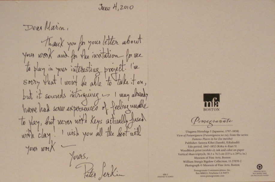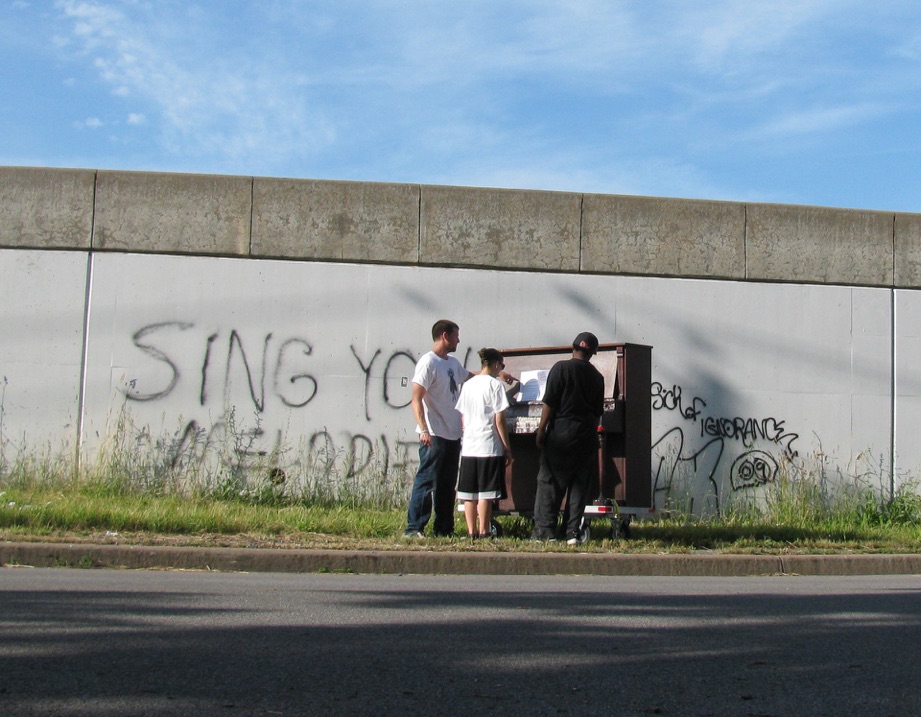 For months prior to my arrival I had been obsessively trying to reach two-time Grammy-winning pianist Peter Serkin, re-known for his Bach renditions, to be a part of the project. Recognizing my obsession synonymous to one of an overly zealous Brittany Spears fan in the wrong world, I exhibited all correspondence attempts; including, to much joy, his hand-written response (albeit in decline). However, one of my favorite project moments was, when situated at an overpass where graffiti read, “sing your melodies,” two neighborhood teens showed me how to play Debussy.