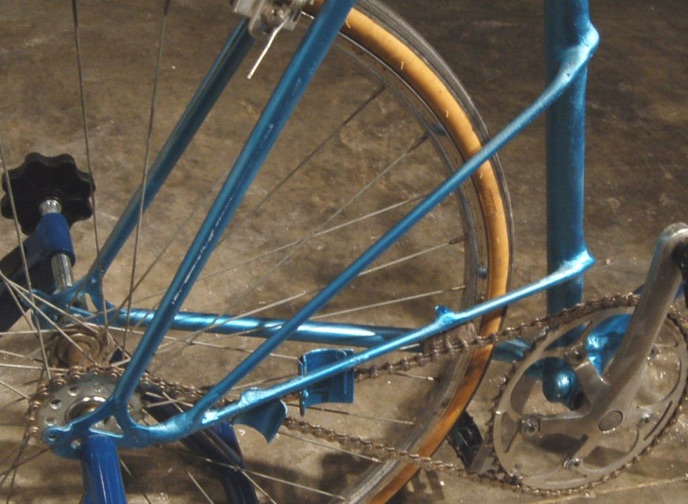 Donning a custom-made jersey, I rode with a bicycle jerry-rigged to go backwards when peddled forwards, and in acquiring this difficult skill I learned about unlearning everything I know about racing a bike. The slightly altered frame and figure-eight chain of my fixed-gear bike allowed me to do two things. First, I could race in reverse, reframing traditional competition parameters to win, but against the flow of other riders. Secondly, I had the option to peddle backwards in order to go forwards, a technique that allowed me to keep pace with the others, but with my pedals going in the opposite direction. Whether peddling forwards or backwards, I realized the limits of my conditioning and began to wonder how much it permeates my daily life. I selected material from everyday life because, as Mary Douglas states in Purity and Danger, “The more the symbol is drawn from the common fund of human experience, the more wide and certain its reception” (114). This bike was available for rent from Silver Star Ski & Sport in Park City, UT.