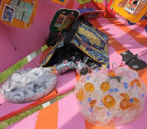I made a flower garden using found objects and recycled materials because rebirth and a healthy planet was the concept I wanted to relay. I painted the wood to mimic a view of Earth from space, suggesting that we can make our planet healthier by finding new uses for recycled products. I used cans and bottles to sculpt flowers, and discarded chicken wire to secure the flowers to the base and the metal I used for a pedestal. The materials themselves relay the ideas of reuse and recycling, while the flowers symbolize the rebirth and renewal our planet would undergo if we executed these practices.
