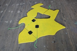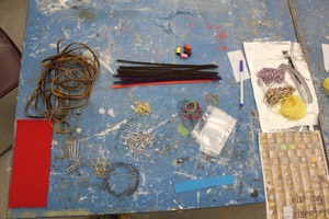The goal was to empower students with the combined roles of: artist, curator, architect, and gallerist. I provided participants with a plywood kit designed to be transformable. Inspired by Elsewhere’s “no-glue” policy, the kits contained materials that could be used to join objects together into sculptures in a non-invasive way such as with Velcro, rubber bands, tape, paper clips, plastic bags, etc. Participants were encouraged to build a sculpture using any material, and return the kit with their sculpture attached to it, along with a completed questionnaire detailing how they would like their sculpture presented within the gallery. For example, perhaps a sculpture should be installed close to the floor near the entrance, or on the far wall near the ceiling, or as a back lit pedestal piece, etc.