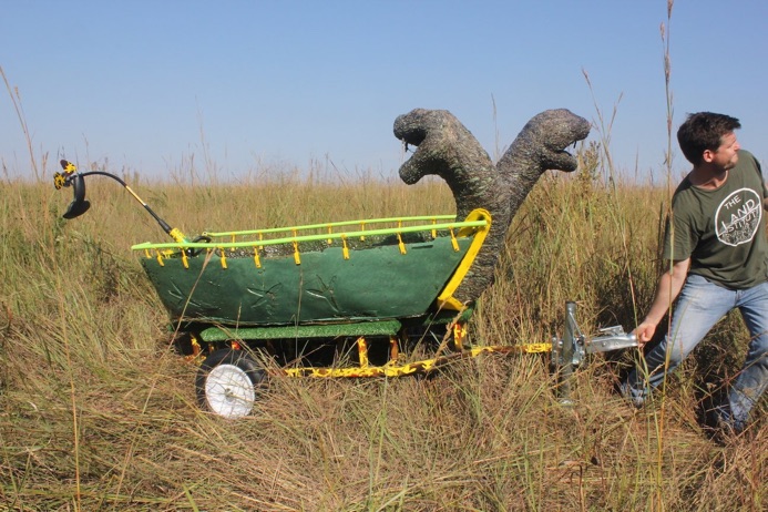 My boat, made of milfoil, held in check by the prairie at The Land Institute in Salina, Kansas at their fall prairie festival.