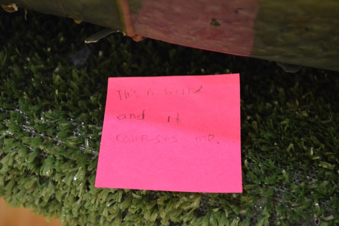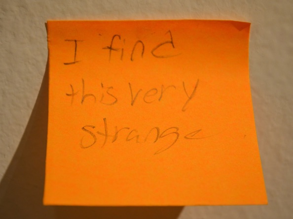 A couple weeks ago the art department hosted workshops as a day-long field trip for high schoolers, it went really smoothly thanks to so many volunteers, and I just received a pleasant surprise - Mike Allen, the museum preparator, photographed the museum tour activities that he and the curator Julie did with the high schoolers - they wrote comments about the work onto post-it notes. I love it.